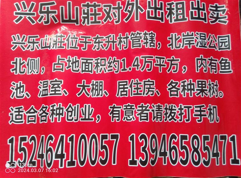 可出租,可賣,北安濕地公園北側(cè),占地面積約,1.4萬平方,內(nèi)有魚池,溫室,大棚,居住房,果園,適合創(chuàng)業(yè),有意者請(qǐng)撥打.13946585471