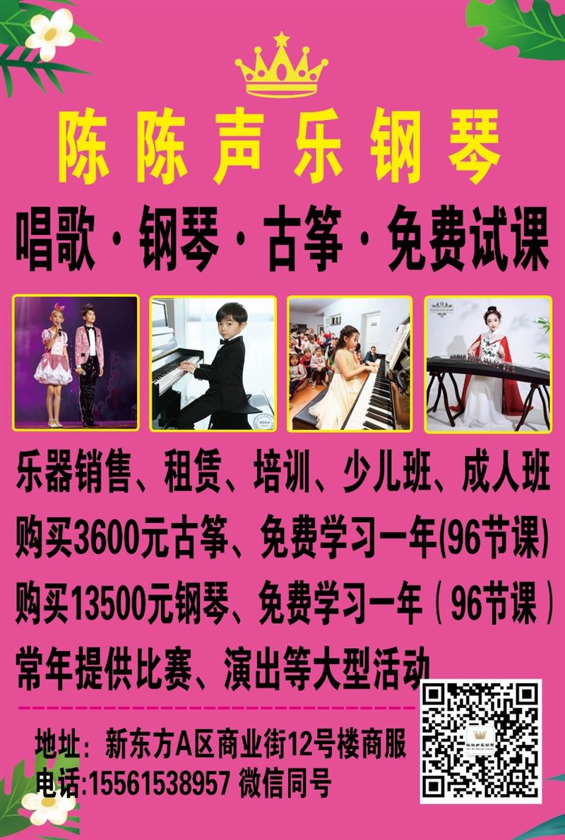 陳陳聲樂鋼琴古箏.少兒班成人班.免費試課.