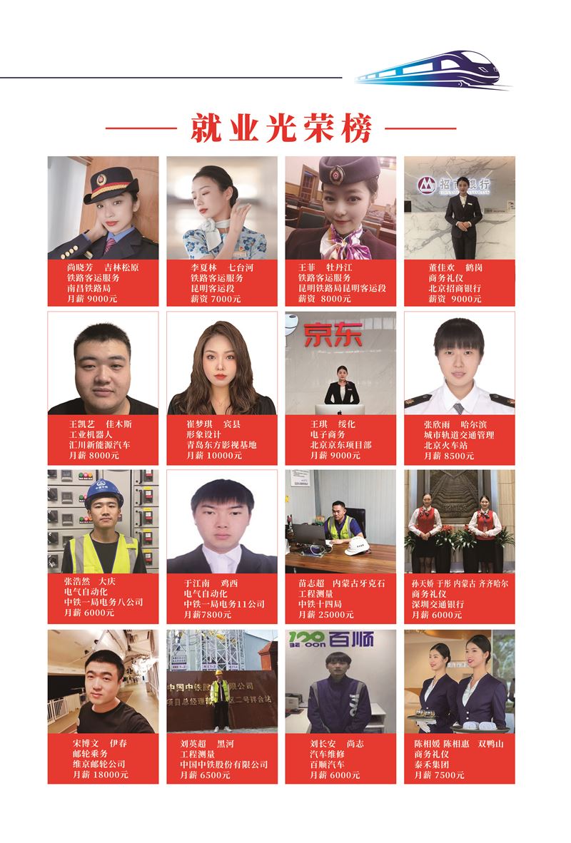 哈鐵道面向全市初中同學(xué)招生,高考成績不理想,考不上重點(diǎn)高中的。學(xué)習(xí)成績不好,想找份兒工作。中專,大專,本科都可以來我學(xué)校。入學(xué)即簽訂就業(yè)協(xié)議。中國50多家鐵路央企國企部門學(xué)費(fèi)低。
